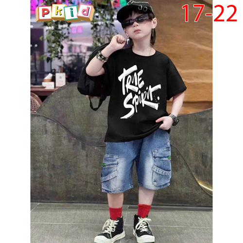 A475768 - Sét rin bé trai Sang Trọng Lịch Lãm cho các bé trai áo thun in chữ quần rin lửng được may