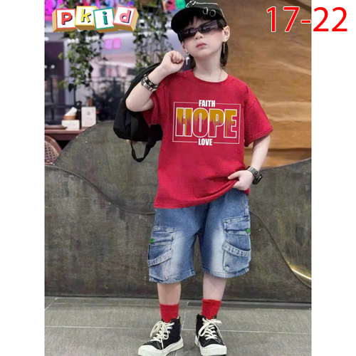 A475771 - Sét rin bé trai Sang Trọng Lịch Lãm cho các bé trai áo thun in chữ quần rin lửng được may