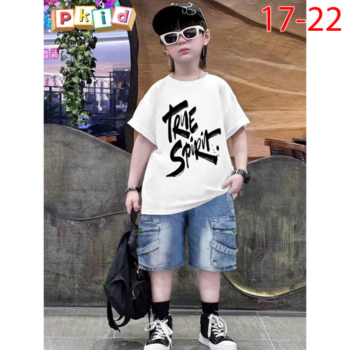 A475774 - Sét rin bé trai Sang Trọng Lịch Lãm cho các bé trai áo thun in chữ quần rin lửng được may