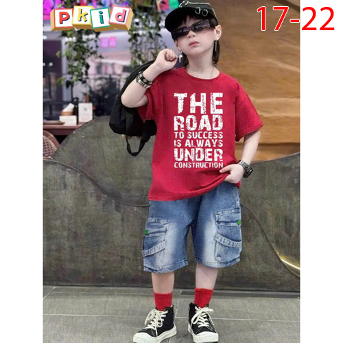 A475777 - Sét rin bé trai Sang Trọng Lịch Lãm cho các bé trai áo thun in chữ quần rin lửng được may