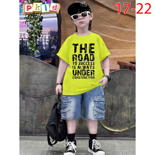 A475778 - Sét rin bé trai Sang Trọng Lịch Lãm cho các bé trai áo thun in chữ quần rin lửng được may