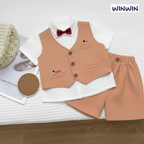 A476081 - Nexxi Win Win set 3 món vải sơ mi cotton phối áo ghile quần lửng vải cotton vân gỗ_Size 1-