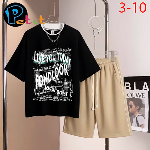 A476332 - Bộ bé trai thun cotton 4c áo tay ngắn may phối viền cổ quần lững cực cool_Size 3-10