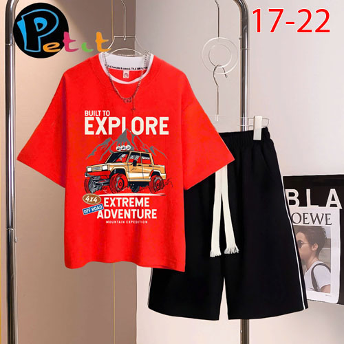 A476382 - Bộ bé trai thun cotton 4c áo tay ngắn may phối viền cổ quần lững cực cool_Size 17-22