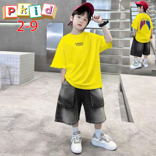 A476918 - Sét rin bé trai Sang Trọng Lịch Lãm cho các bé trai áo in chữ quần rin lửng_Size 2-9