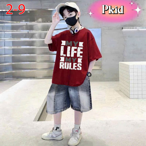 A476994 - Sét rin bé trai Sang Trọng Lịch Lãm cho các bé trai áo thun in chữ quần rin lửng_Size 2-9