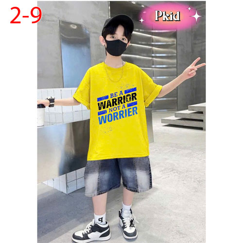 A477012 - Sét rin bé trai Sang Trọng Lịch Lãm cho các bé trai áo thun in chữ quần rin lửng_Size 2-9
