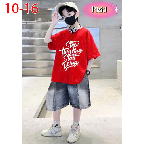 A477034 - Sét rin bé trai Sang Trọng Lịch Lãm cho các bé trai áo thun in chữ quần rin lửng_Size 10-1