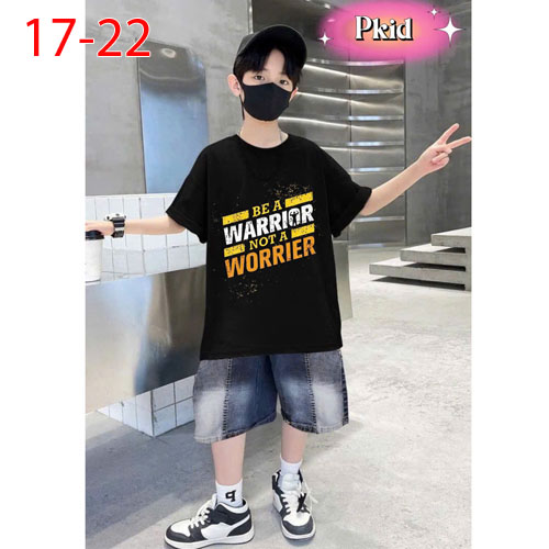 A477052 - Sét rin bé trai Sang Trọng Lịch Lãm cho các bé trai áo thun in chữ quần rin lửng_Size 17-2