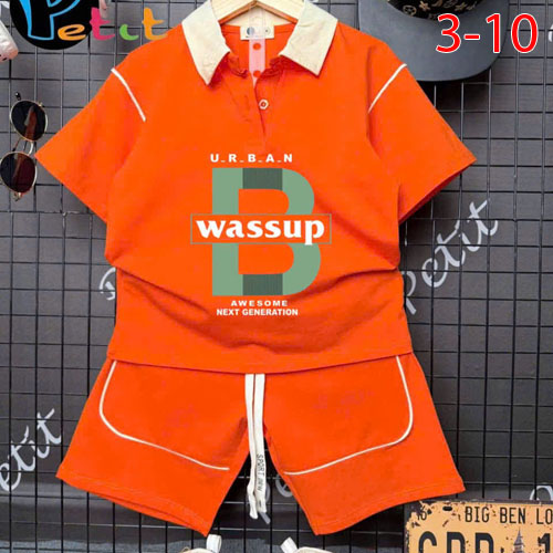 A477415 - Bộ thun bé trai áo ngắn tay cổ trụ quần lững cả bộ may phối chạy viền léin chữ B_Size 3-10