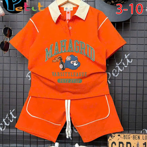 A477416 - Bộ thun bé trai áo ngắn tay cổ trụ quần lững cả bộ may phối chạy viền léin chữ B_Size 3-10