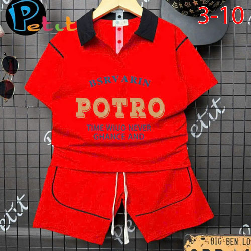 A477419 - Bộ thun bé trai áo ngắn tay cổ trụ quần lững cả bộ may phối chạy viền léin chữ B_Size 3-10