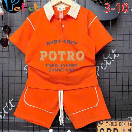 A477425 - Bộ thun bé trai áo ngắn tay cổ trụ quần lững cả bộ may phối chạy viền léin chữ B_Size 3-10