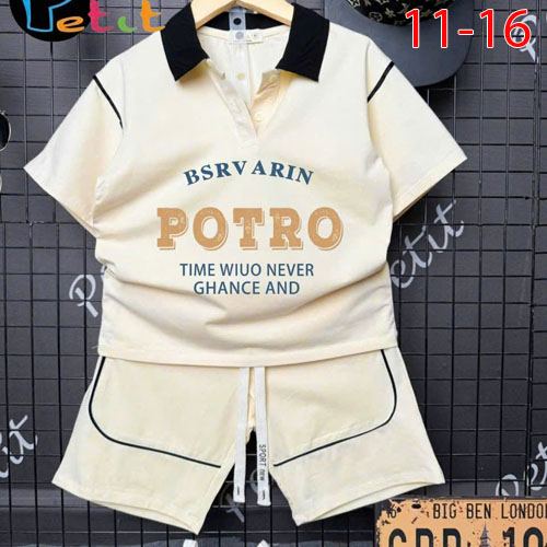 A477434 - Bộ thun bé trai áo ngắn tay cổ trụ quần lững cả bộ may phối chạy viền léin chữ B_Size 11-1
