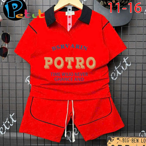 A477436 - Bộ thun bé trai áo ngắn tay cổ trụ quần lững cả bộ may phối chạy viền léin chữ B_Size 11-1