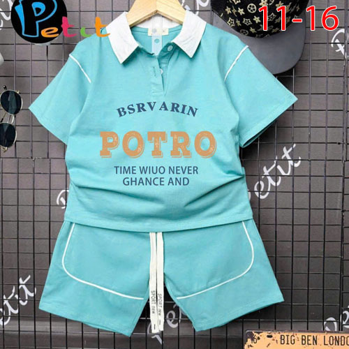 A477437 - Bộ thun bé trai áo ngắn tay cổ trụ quần lững cả bộ may phối chạy viền léin chữ B_Size 11-1