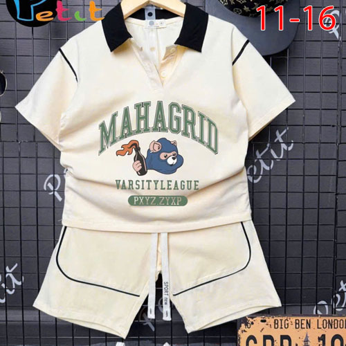 A477438 - Bộ thun bé trai áo ngắn tay cổ trụ quần lững cả bộ may phối chạy viền léin chữ B_Size 11-1