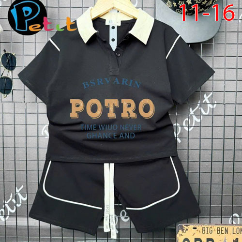 A477441 - Bộ thun bé trai áo ngắn tay cổ trụ quần lững cả bộ may phối chạy viền léin chữ B_Size 11-1