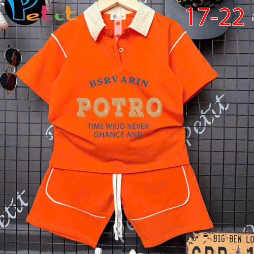 A477445 - Bộ thun bé trai áo ngắn tay cổ trụ quần lững cả bộ may phối chạy viền léin chữ B_Size 17-2