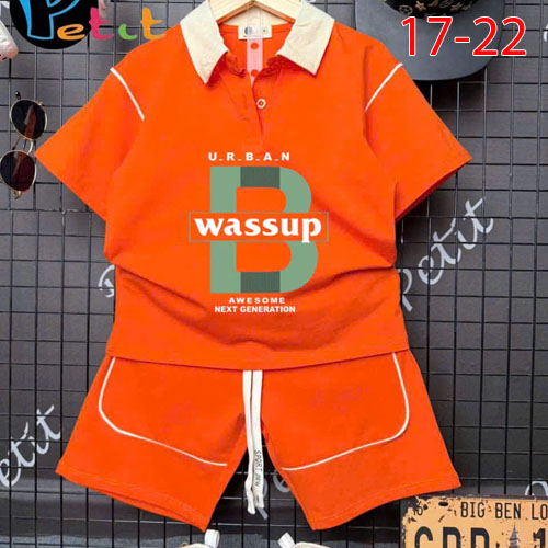 A477455 - Bộ thun bé trai áo ngắn tay cổ trụ quần lững cả bộ may phối chạy viền léin chữ B_Size 17-2
