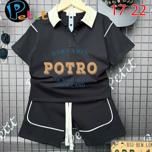 A477456 - Bộ thun bé trai áo ngắn tay cổ trụ quần lững cả bộ may phối chạy viền léin chữ B_Size 17-2