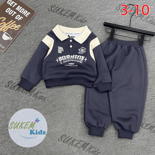 A477761 - Bộ thun da cá dài tay áo may cắt phối cổ trụ cài nút in chữ quần dài ống bo_Size 3-10