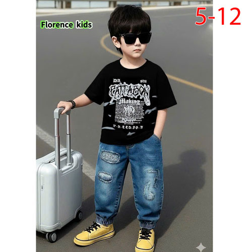 A477878 - Sét bộ style năng động cá tính cho bé trai áo thun cotton 4c in chữ quần jean bo lai dài_S