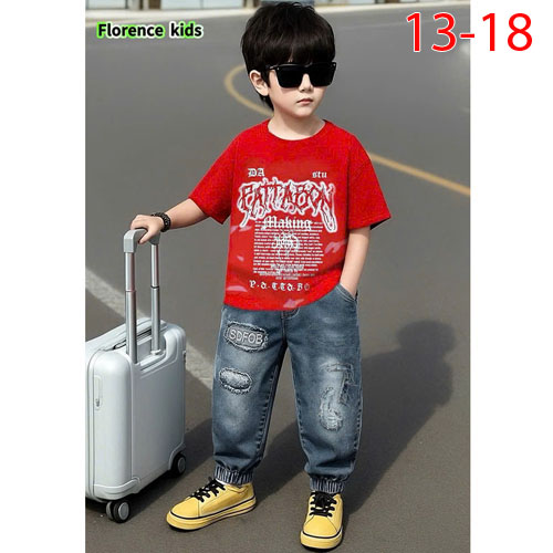 A477880 - Sét bộ style năng động cá tính cho bé trai áo thun cotton 4c in chữ quần jean bo lai dài_S