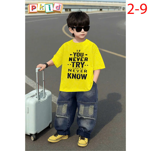 A478062 - Set jean sang trọng lịch lãm cho các bé trai áo thun cotton 4c in chữ quần jean dài_Size 2