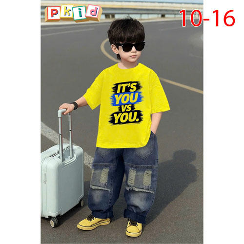 A478067 - Set jean sang trọng lịch lãm cho các bé trai áo thun cotton 4c in chữ quần jean dài_Size 1