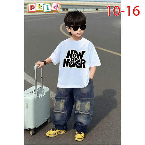 A478068 - Set jean sang trọng lịch lãm cho các bé trai áo thun cotton 4c in chữ quần jean dài_Size 1