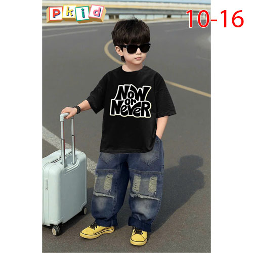 A478072 - Set jean sang trọng lịch lãm cho các bé trai áo thun cotton 4c in chữ quần jean dài_Size 1