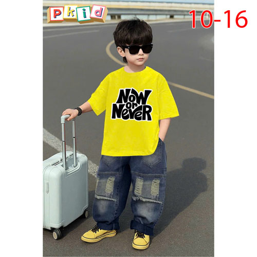 A478073 - Set jean sang trọng lịch lãm cho các bé trai áo thun cotton 4c in chữ quần jean dài_Size 1