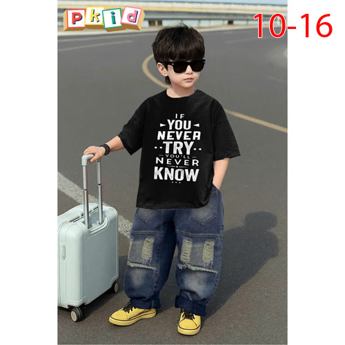 A478074 - Set jean sang trọng lịch lãm cho các bé trai áo thun cotton 4c in chữ quần jean dài_Size 1