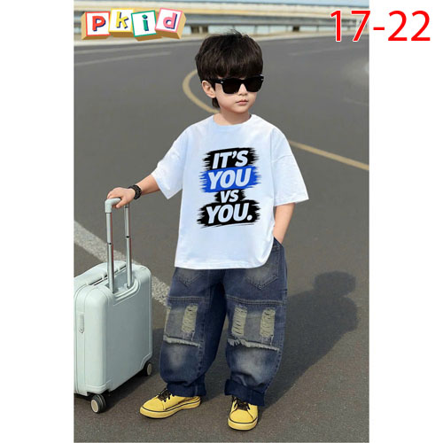 A478080 - Set jean sang trọng lịch lãm cho các bé trai áo thun cotton 4c in chữ quần jean dài_Size 1