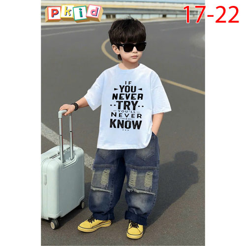A478081 - Set jean sang trọng lịch lãm cho các bé trai áo thun cotton 4c in chữ quần jean dài_Size 1