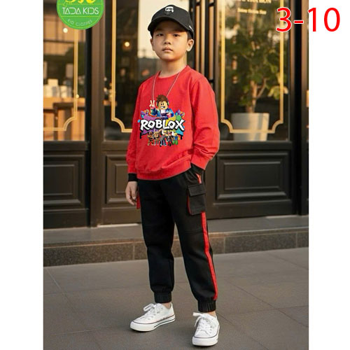 A478235 - Bộ bé trai dài quần rã phối túi hộp 2 bên siêu ngầu chất coton_Size 3-10