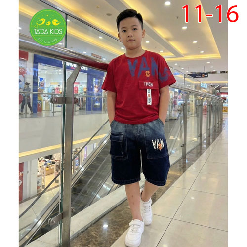 A478292 - Set jean bé trai wash đá phối túi jean áo thun cotton quần jean_Size 11-16