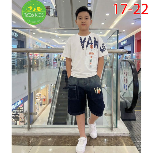 A478299 - Set jean bé trai wash đá phối túi jean áo thun cotton quần jean_Size 17-22