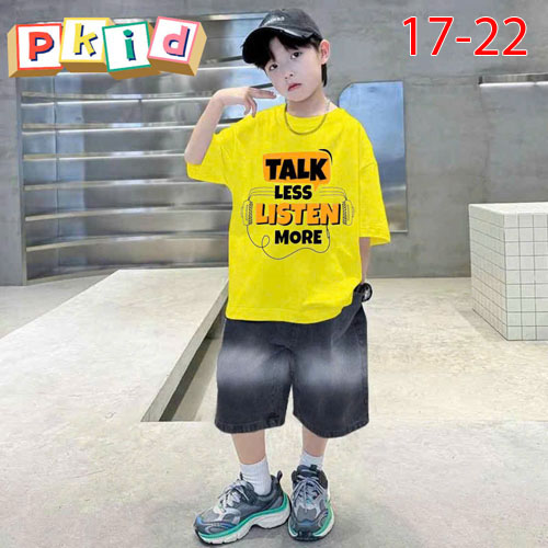 A479335 - Sét rin bé trai Sang Trọng Lịch Lãm cho các bé trai áo in chữ quần rin lửng chất rin cotto