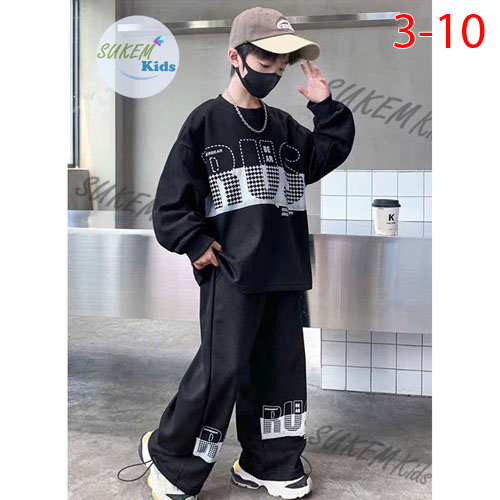 A480200 - Bộ thun da cá dài tay bé trai áo may cắt phối với bo dệt in RUS quần dài suống rút dây 2 b