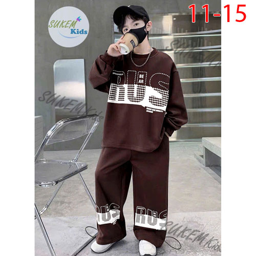 A480203 - Bộ thun da cá dài tay bé trai áo may cắt phối với bo dệt in RUS quần dài suống rút dây 2 b