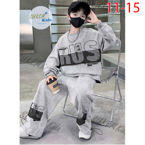 A480204 - Bộ thun da cá dài tay bé trai áo may cắt phối với bo dệt in RUS quần dài suống rút dây 2 b