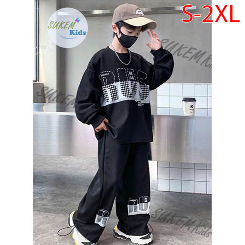 A480206 - Bộ thun da cá dài tay bé trai áo may cắt phối với bo dệt in RUS quần dài suống rút dây 2 b