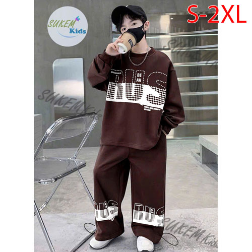 A480208 - Bộ thun da cá dài tay bé trai áo may cắt phối với bo dệt in RUS quần dài suống rút dây 2 b