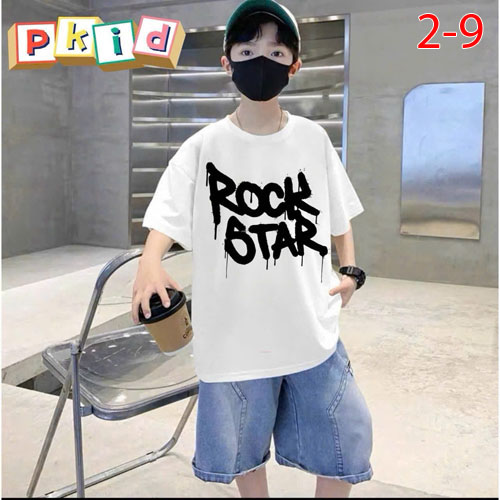 A480261 - Set jean sang trọng lịch lãm cho các bé trai áo chất thun in chữ quần jean lửng_Size 2-9