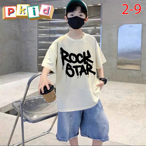 A480265 - Set jean sang trọng lịch lãm cho các bé trai áo chất thun in chữ quần jean lửng_Size 2-9