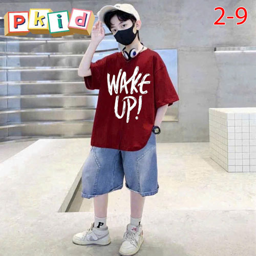 A480268 - Set jean sang trọng lịch lãm cho các bé trai áo chất thun in chữ quần jean lửng_Size 2-9