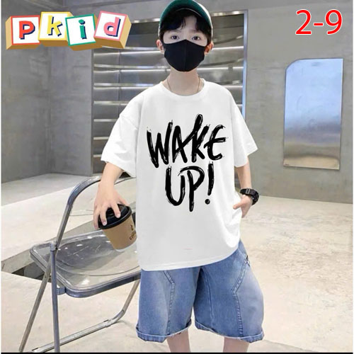A480273 - Set jean sang trọng lịch lãm cho các bé trai áo chất thun in chữ quần jean lửng_Size 2-9