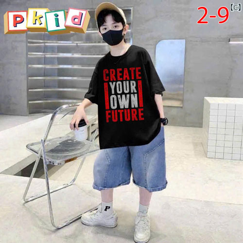 A480280 - Set jean sang trọng lịch lãm cho các bé trai áo chất thun in chữ quần jean lửng_Size 2-9